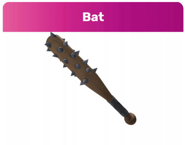 Bat — это Божественный нож (Godly Knife), выполненный в виде устрашающей бейсбольной биты с острыми шипами. Его дизайн идеально передаёт мрачную атмосферу Хэллоуина.