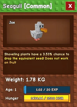 | Удалить любое растение лопатой | 3.28% шанс выпадения соответствующего семени | 3.28% за каждое использование лопаты | Не работает на фруктах, Конфетном цветке и лимитированных видах |