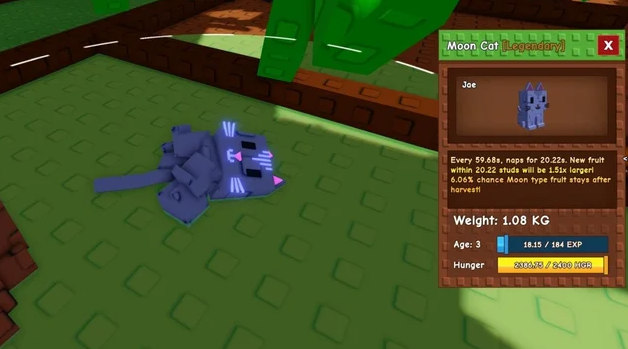 Появился в Обновлении 1.07.1 (25 мая 2026). Даёт два уникальных эффекта, которые усиливаются с Возрастом (макс. Ур. 30). В отличие от обычных котов, его силы влияют на размер плодов и эффективность Лунных культур.