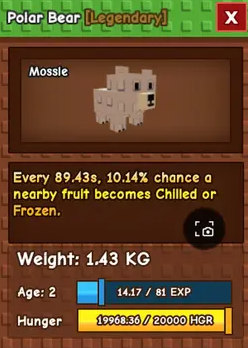 Каждые 90 секунд Полярный Медведь с шансом 10% накладывает на ближайший урожай мутации Охлаждённый или Замороженный: