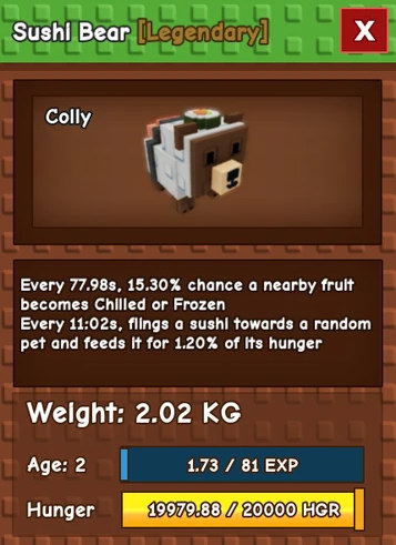 - Шанс получить Sushi Bear: 7% за вылупление.