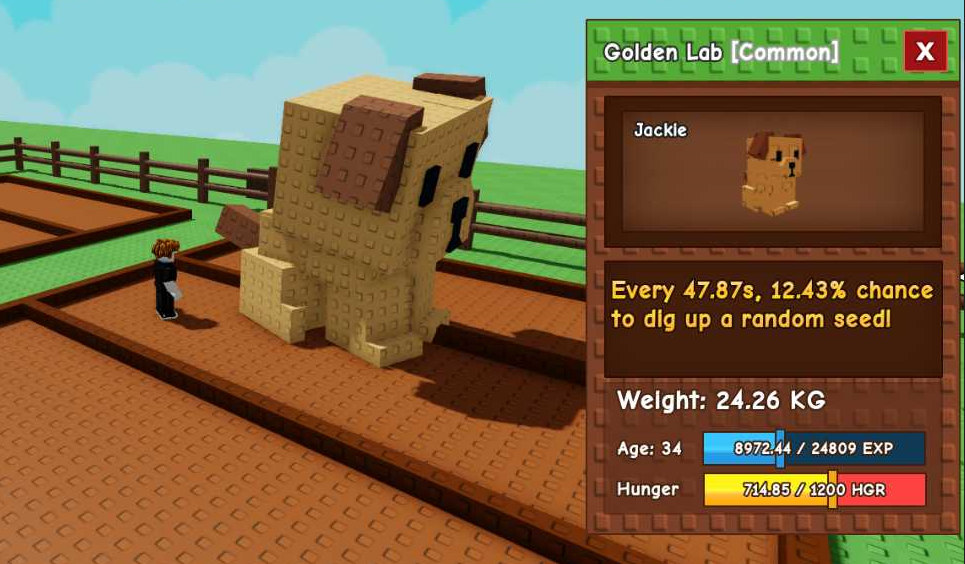 Основная способность: Копает каждые 60 секунд с шансом ~10% найти случайное семя из магазина (например, Морковь, Помидор).