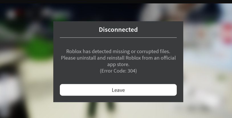Ошибка отображается как: «Отключено. Roblox обнаружил отсутствующие или повреждённые файлы». Она блокирует запуск игр, когда система безопасности Roblox выявляет изменённые или скомпрометированные файлы. В отличие от ошибок подключения (например, код 267), код 304 указывает именно на нарушение целостности файлов.