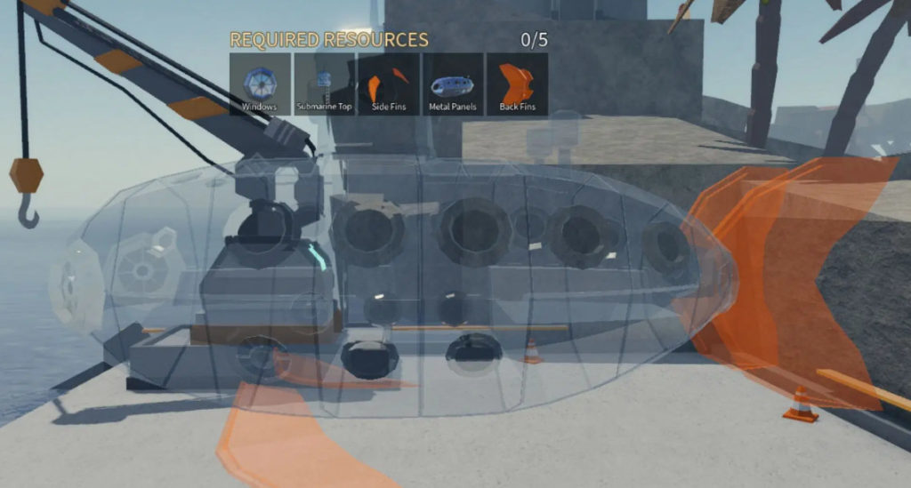 - Подойдите к подсвеченным местам возле каркаса подлодки.