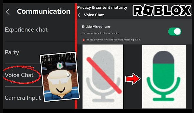 Активация: Настройки → Конфиденциальность и возрастной рейтинг → Общение → Переключить «Использовать микрофон для голосового чата» (индикатор зелёный при активации).