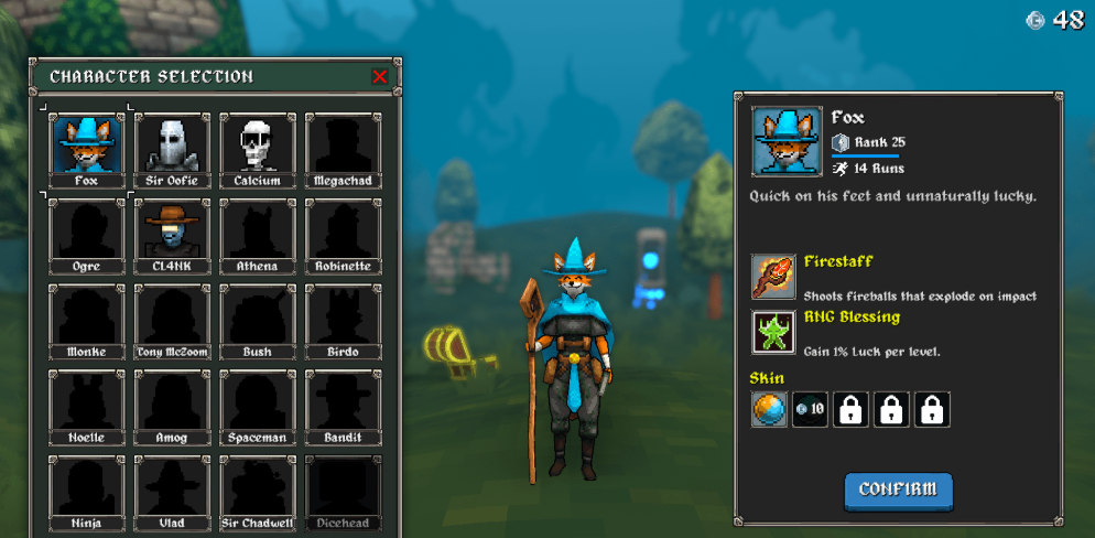 Fox — это не просто очередной стартовый персонаж, которого вы позже забросите. Это хитрое существо обладает чем-то особенным: пассивной способностью RNG Blessing. Что это значит? Всё просто. Каждый раз, когда вы повышаете уровень, Лис получает +1% к Удаче. Эффект накапливается без ограничений, так что к 100 уровню у вас будет +100% к Удаче.
