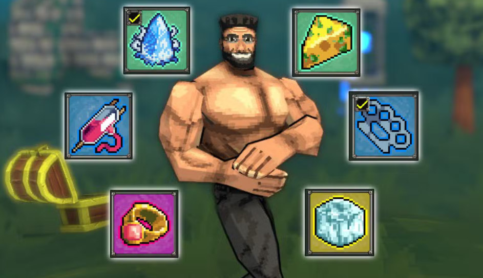 | Предметы | Спортивный соус, Заплесневелый сыр, Овёс, Батарейка, Мясное кольцо, Браслет времени, Клевер, Святая книга, Наковальня, Зеркало |