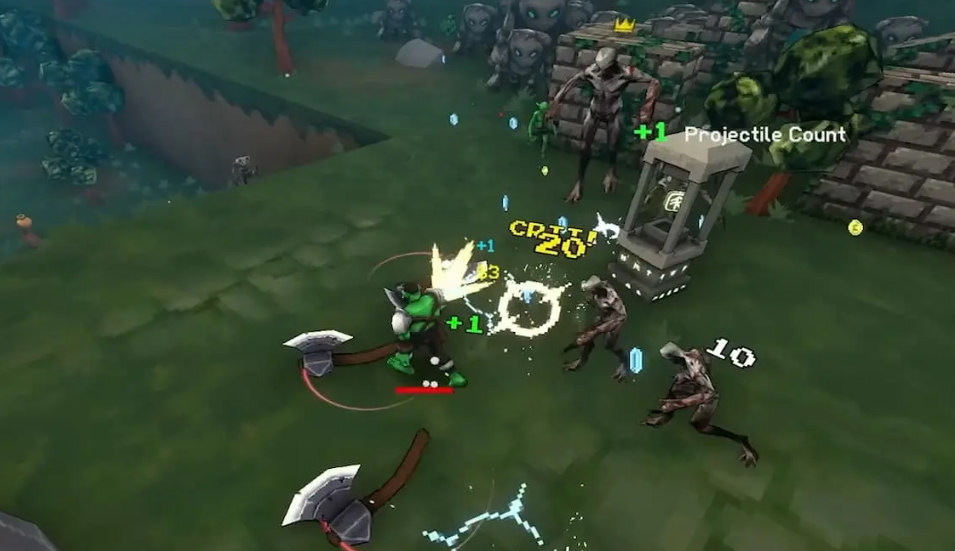 - Топоры не требуют прицеливания — они вращаются автоматически вокруг вас