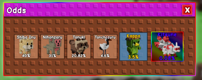 | Питомец | Шанс | Редкость |
