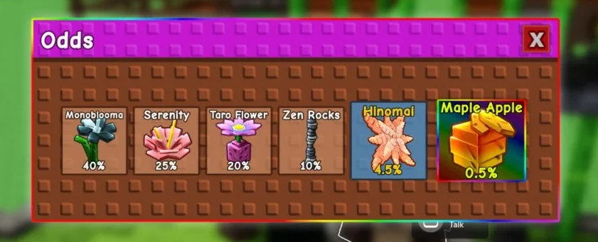- Кленовое Яблоко: Редчайшее семя (0.5%) = символ статуса