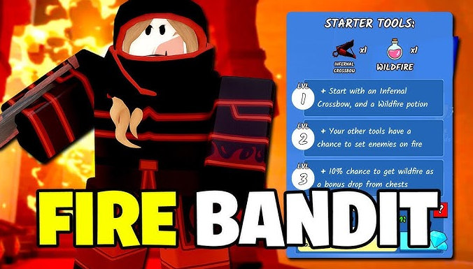 Огненный Бандит — это премиум класс 4 звезды, который стоит 200 Алмазов для разблокировки в Ежедневном Магазине Классов. Как высокоуровневый класс, он имеет ограниченную доступность в ротации магазина, так что хватайте его, когда увидите!