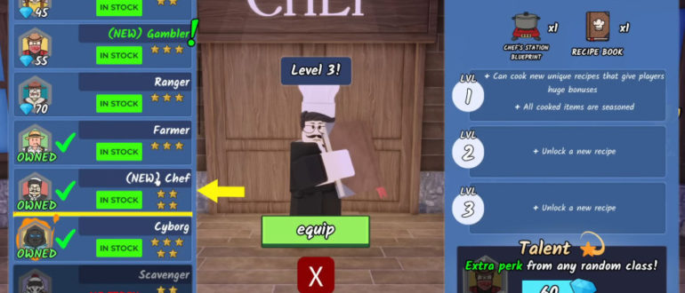 1. Роль и возможности класса Chef — это 4-звёздочный класс поддержки, сфокусированный на повышении эффективности еды и предоставлении уникальных преимуществ готовки. Он начинает игру с Чертежом Кухонной станции и Книгой рецептов, что позволяет