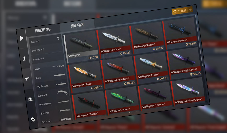 - Упор на холодное оружие: полноценный «симулятор ножей» с кучей моделей и скинов.