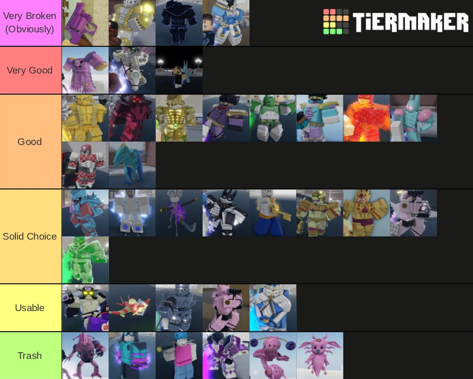 - Star Platinum: The World, Tusk Act 4, Weather Report — универсальны для PvP.